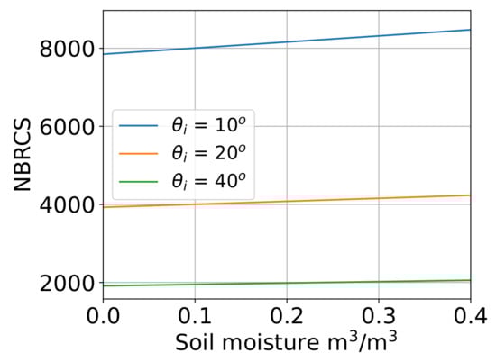 Relationship between averaged NBRCS and soil moisture, for a fixed geometry, vegetation parameters, and surface parameters.