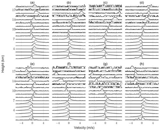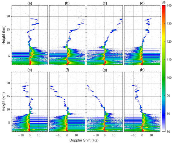 - Hildebrand, P.H.; Sekhon, R.S. Objective Determination of the Noise Level in Doppler Spectra. J. Appl. Meteor. 1974, 13, 808–811. [Google Scholar] [CrossRef]
