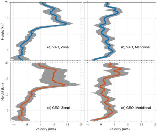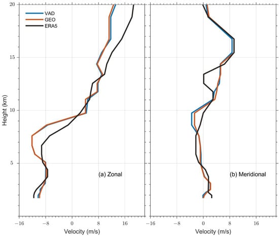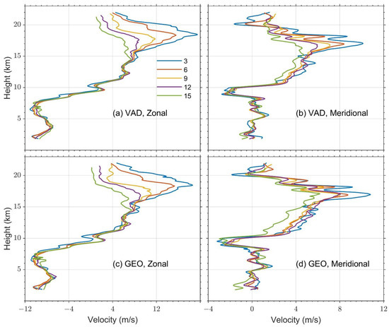 - Generally, both the GEO and VAD methods gave similar wind profiles. With increasing height, the discrepancy between the two methods gradually became nonnegligible. This indicates that the anisotropy of turbulence becomes significant at higher altitudes; therefore, the linear variation rather than the constant wind assumption works better. For the same methods, the discrepancy at higher altitudes among wind velocities derived from different zenith angle measurements was nonnegligible.