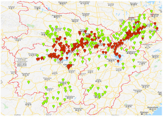 The PRC is the world’s largest rice producer, and its planting area accounts for approximately 18.5% of the world’s rice area, second only to India. The PRC’s total rice output ranks first globally, accounting for approximately 27.7%. The PRC’s rice output also ranks first on the national food list, and 65% of the PRC’s population feeds on rice as the main food. PRC rice can be divided into double-cropping rice (early rice and late rice) and single-cropping rice. Double-cropping rice is planted in a wide area, mainly distributed in Southeast Mainland China. Our research focuses on the middle reaches of the Yangtze River, located in the east part of mainland China and mainly downstream below the Three Gorges Dam with a total area of 618,177 km2. This area is also the main planting area for double-cropping rice and grain crops in the Hubei, Hunan, Jiangxi, and Anhui provinces, as shown in Figure 1. Most plains along the river are of low and flat terrain. The altitude is mostly below 50 m. Since old times, it has been known as the “Hometown of Fish and Rice”. It is also essential for rice and grain crops producing areas in the PRC. The rice planting area and total rice production have always been at the forefront of the country. The rice and grain crops-related industry is the critical foundation for the economic development of these four provinces. We chose this region as our study area to estimate how to build up the relationship between dynamic crop production situations and food security issues.