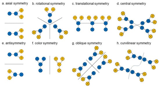 Generalized symmetric structure Tupu. Parts (a–h) represent 8 kinds of symmetrical structures.