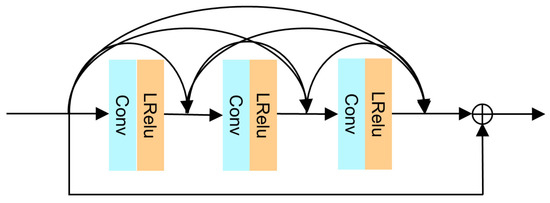 The architecture of residual dense block, where LRelu is leakyRelu.