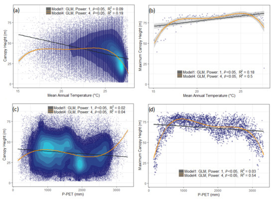 3.3.1. Bivariate Analysis for Canopy Height and Climatic Variables