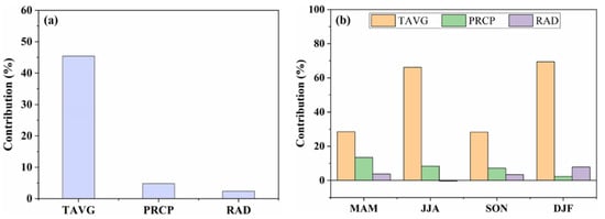The contributions of climate variables to IAV of NEP in (a) annual and (b) seasonal timescales.