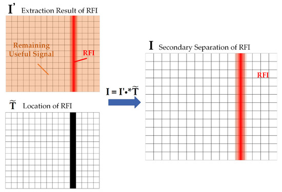 In order to further reduce the loss of useful signals after RFI mitigation, this study proposes a secondary separation of RFI, the process is shown in Figure 5.