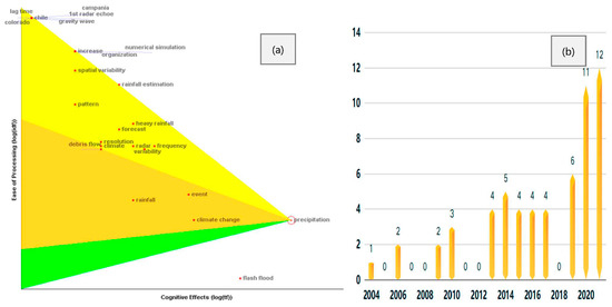 Details of the key node “precipitation”. (a) Pennant illustration; (b) publication timing outbreak.