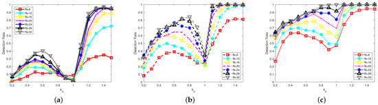 The detection rate of Tomo-ANM under different samples N. (a) 10 dB. (b) 20 dB. (c) 30 dB.