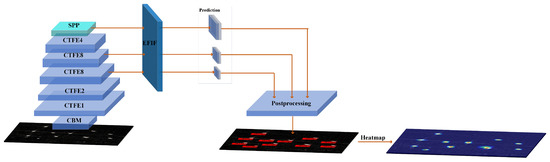This paper proposes a target detection algorithm suitable for SAR ships. The algorithm is generally composed of a CTFENet, SPPNet, EFIF module, prediction module, and the BBRD method. The algorithm loss function consists of a regression loss function, confidence loss function, and classification loss function. Among them, the CIoU [32] loss function is used as the regression loss function, and the cross-entropy loss function is used as the confidence loss function and the classification loss function, respectively. Experiments show that the detection effect of the network on different datasets is excellent in complex environments. The network structure is shown in Figure 5.