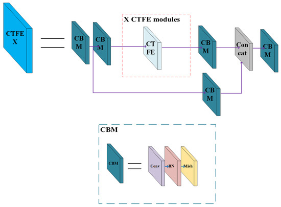 Firstly, this paper proposed CTFENet as a feature extraction network to extract broader and richer feature details. The network was built on the CTFE module, a module that implemented the Swin Transformer module architecture using convolutions. The CTFE module mainly consisted of a 3 × 3 convolution, triplet attention, Mish activation function, MLP, and a residual structure.