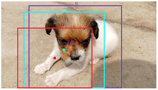 Object detection edges are generally represented by a four-dimensional vector , representing the central point coordinates and width and height of the edges, respectively. In Figure 11, the red box O, represents the original prediction box and the purple box G represents the real box of the target. The bounding box regression refers to finding a relationship, so that the predicted candidate box O can get a regression bounding box S that is closer to the real box G through mapping.