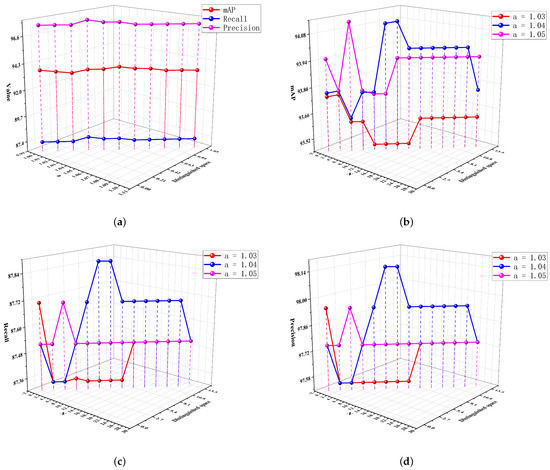 In this formula, the is taken as . It is evident from the formula that the coordinate offset of the center point of the candidate target box is multiplied by , and minus , changing from the original value domain to , making it easier to predict the center point in the candidate target box of the grid boundary, and at the same time, we avoid the value domain being so large as to cause an excessive candidate box offset, which affects the detection performance. The bounding box regression decoding (BBRD) process is shown in Figure 12.