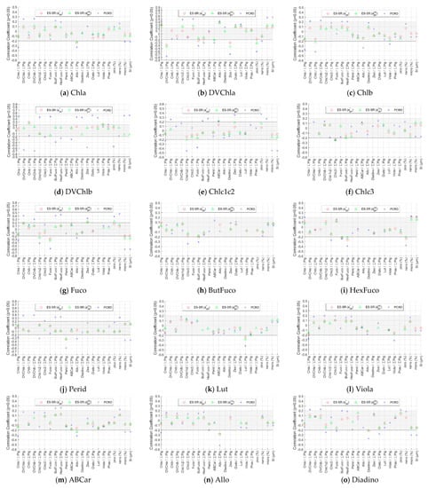 Appendix B.2. Correlation Coefficients of Phytoplankton Pigment Concentrations