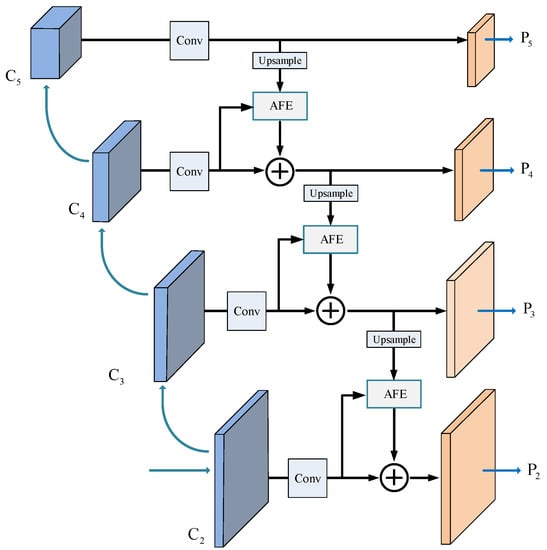 Structure of the adaptive feature pyramid. AFE: adaptive feature enhancement.