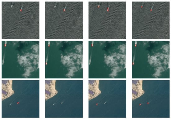 The proposed method is verified on a remote sensing image dataset collected from Google Earth. The dataset contains a total of 3000 images, covering the port and sea environment. The dataset is randomly divided into a training set, validation set, and test set according to the ratio of 6:1:3. In order to more clearly show the detection performance on ships of different sizes, ships in the dataset are divided into three categories of small ships, medium ships, and large ships for evaluation. Among them, the size of the bounding box for small ships is less than pixels, while the medium ships are between pixels and pixels, and the large ships are larger than pixels.