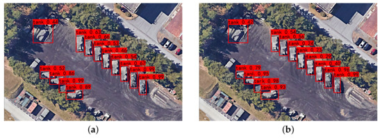 Due to the low resolution of the detection target, poor target detail, and small target proportion during earth observation, the inpainting area cannot obtain enough feature information from the surrounding background area. Therefore, the image quality of the inpainted area will be unsatisfactory, which makes it more difficult for the detector to detect the target whose original target features are not obvious, as shown in Figure 7. After image inpainting, the detection confidence of objects with weak features is greatly reduced, and the remaining objects with strong features are less affected by image inpainting.