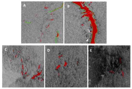 - Chehresa, S.; Amirkhani, A.; Rezairad, G.A.; Mosavi, M.R. Optimum features selection for oil spill detection in SAR image. J. Indian Soc. Remote Sens. 2016, 44, 775–787. [Google Scholar] [CrossRef]
