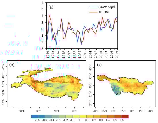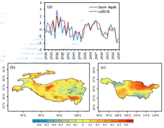 The authors thank the Climate Research Unit (CRU) at the University of East Anglia for providing precipitation and scPDSI data and the National Tibetan Plateau Data Center for providing snow depth products and are grateful to the anonymous reviewers for their helpful comments and suggestions to improve the quality of this paper.