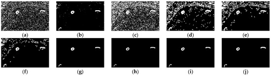 - Otsu, N. Threshold selection method from gray-level histograms. IEEE Trans. Syst. Man Cybern. 1979, 9, 62–66. [Google Scholar] [CrossRef] [Green Version]