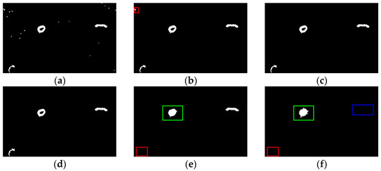 where represents open operation, and represents closed operation. The open operation can reduce the noise of the image and remove the outliers in the image. The closed operation can fill the small cracks in the image without changing the position and size of the image block. Therefore, the alternative use of open operation and closed operation can remove the noise in the picture, while ensuring that the image is basically unchanged. In this paper, the morphological filtering of the image is achieved through open operation and closed operation, as shown in Equation (14).