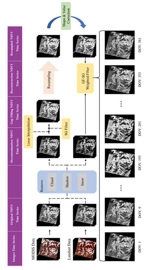 - Cao, R.; Chen, Y.; Shen, M.; Chen, J.; Zhou, J.; Wang, C.; Yang, W. A simple method to improve the quality of NDVI time-series data by integrating spatiotemporal information with the Savitzky-Golay filter. Remote Sens. Environ. 2018, 217, 244–257. [Google Scholar] [CrossRef]