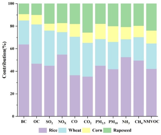 Emission contributions by different crop residues in Hubei from 2012 to 2020.