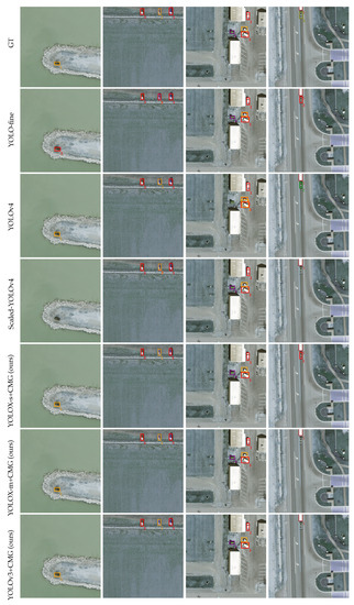 In this section, the proposed modules are analyzed and tested using the YOLOX small (-s) and medium (-m) backbones, which are adopted exactly from the YOLOv5 backbone and its scaling rules, as well as the YOLOv3 backbone (DarkNet53+SPP bottleneck) due to its simplicity and broad compatibility, and hence popularity, in various applied domains. More detailed descriptions can be referred to in the YOLOX paper [42]. We also perform an ablation study to analyze the effects of different components and a comparative study with state-of-the-art detectors including EfficientDet [43], YOLOv3 [38], YOLO-fine [28] YOLOv4, and Scaled-YOLOv4 [44].