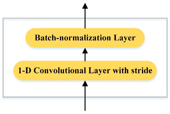 Each convolutional block includes a 1-D convolutional layer with stride and a batch-normalization layer [24]. Given an input sequence where refers to the length of sequence and refers to the channel number of sequence (For the first convolutional block, the value of is 1), the 1-D convolutional layer with a stride in the convolutional block will extract features and output the feature maps with less length. The output feature maps of the convolutional block could be obtained after batch-normalization layer. This process could be written as: