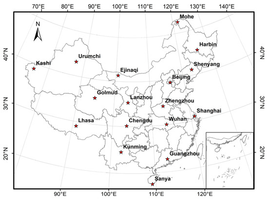 Distribution of 17 CMA diffuse solar radiation stations used in this study.