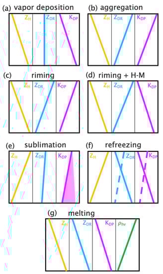 - Griffin, E.M.; Schuur, T.J.; Ryzhkov, A.V. A polarimetric analysis of ice microphysical processes in snow using quasi-vertical profiles. J. Appl. Meteor. Climatol. 2018, 57, 31–50. [Google Scholar] [CrossRef]