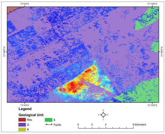 The study area is covered by sedimentary rocks, including Mesozoic sedimentary rocks, Rawalpindi group, Siwalik group, and the Quaternary alluvium deposits [54]. Figure 3 depicts a geological map of the study area.