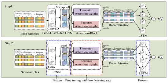 Migrate the parameters of the base model to the target dataset under the condition of small samples, freeze the LSTM and CNN layers’ parameters in the network, then fine-tune the Time-step&features Attention-block layers’ parameters at the 1/20 learning rate of the original base model in stage 2, finally obtain the TC-DLDPM with better stability and accuracy.