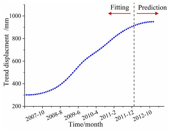 - For the trend displacement component, the cubic curve fitting method is adopted for fitting and modeling in this paper to realize the trend prediction model of the displacement.