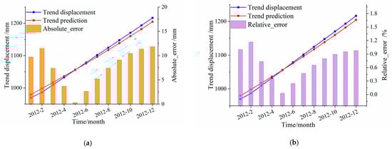 Prediction results of the trend displacement on ZG110. (a) Absolute error. (b) Relative error.