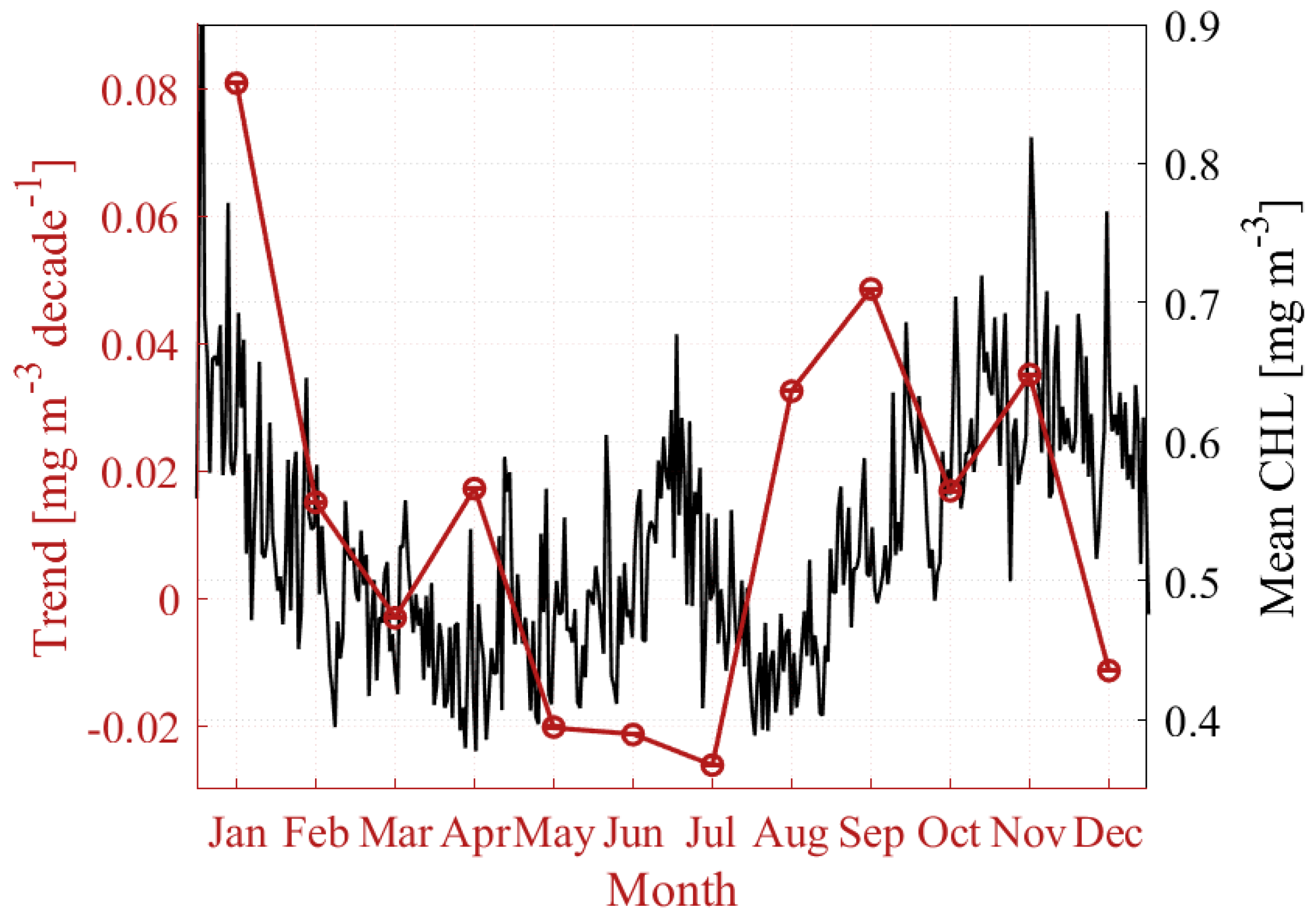- Behrenfeld, M.J.; O’Malley, R.T.; Boss, E.S.; Westberry, T.K.; Graff, J.R.; Halsey, K.H.; Milligan, A.J.; Siegel, D.A.; Brown, M.B. Revaluating ocean warming impacts on global phytoplankton. Nat. Clim. Chang. 2016, 6, 323–330. [Google Scholar] [CrossRef]