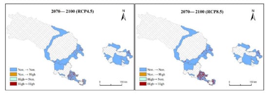 4.1. The General Changes of Areas with a High Risk of Tourism Pressure