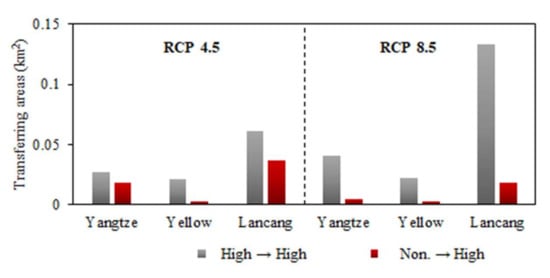 | High-pressure areas(km2) | Yangtze | 0.030 | 0.045 | 47.39% | 0.046 | 0.044 | −4.63% | |