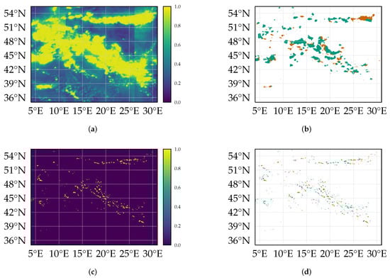 Table A3 shows the CSI of the persistence model used for the calculation of the improvement factor. Figure 5d shows the skill for a severe weather event (4 June 2016 []).