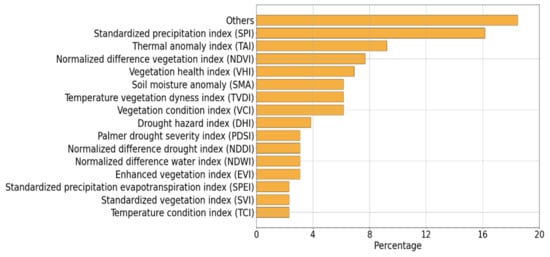 Figure 12. Drought indicators and indices used for characterizing and assessing drought conditions and their impacts in Southeast Asia over the past 21 years. The “others” indicate drought indicators/indices with a frequency of less than three. Many studies employed more than one drought indicator/index.