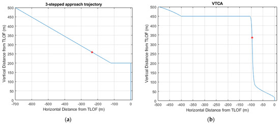(a) 3−stepped trajectory and selected TPVF (highlighted in red); (b) VTCA trajectory and selected TPVF (highlighted in red).