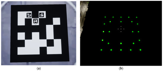 (a) Daylight: difference between the positions of the corners recognized by the image processing algorithm and their reprojections estimated through the true markers’ pose; (b) Low−visibility: difference between the positions of the corners recognized by the image processing algorithm and their reprojections estimated through the true markers’ pose. Corners’ legend is referred to the biggest marker of Figure 6a.