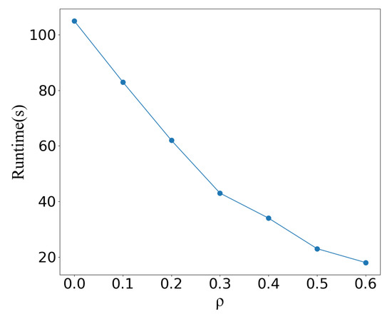 We implement experiments with various ratios of the high-density nodes/parts to the overall nodes. Figure 7 demonstrates that as grows, so does the clustering performance. The best performance achieves when is 0.4. The inference time becomes lower as rises, as seen in Figure 8. After a certain value, the increasing will result in a decrease in performance. This is because high-density nodes/parts are often located around the cluster center. If is too high, it will affect the accuracy of density division, which might result in wrong cluster central parts and worse performance.