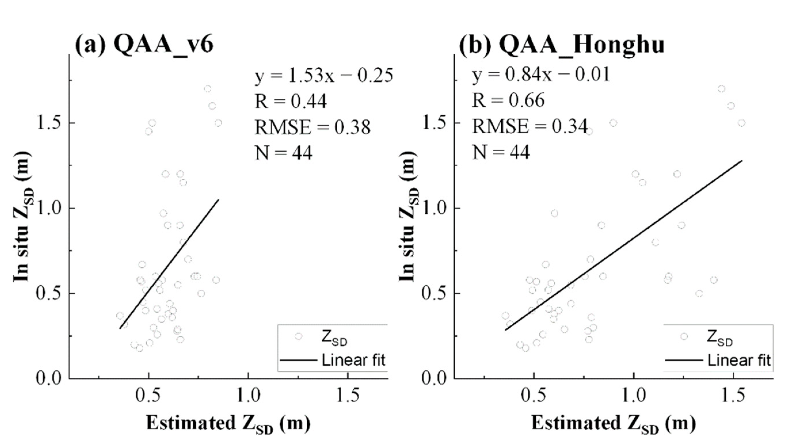 Chicago/Turabian StyleChen, Miaomiao, Fei Xiao, Zhou Wang, Qi Feng, Xuan Ban, Yadong Zhou, and Zhengzheng Hu. 2022. "An Improved QAA-Based Method for Monitoring Water Clarity of Honghu Lake Using Landsat TM, ETM+ and OLI Data" Remote Sensing 14, no. 15: 3798. https://doi.org/10.3390/rs14153798