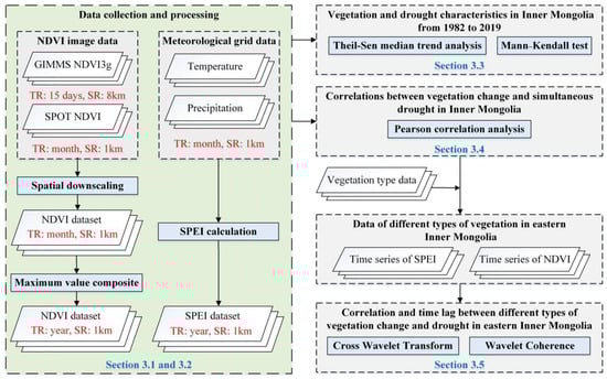 Flowchart of the methods used in this study. In the figure, TR represents temporal resolution and SR represents spatial resolution. Parallelograms represent datasets and rectangles represent research methods.