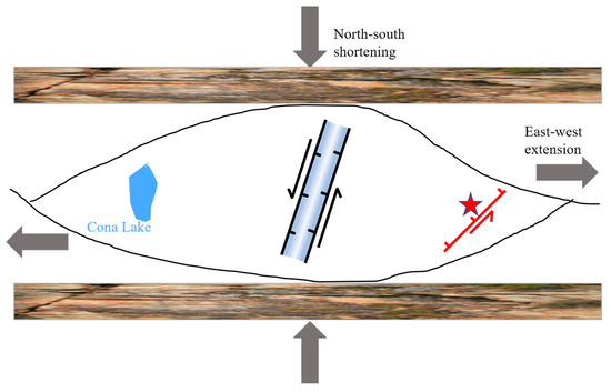 In light of the above analysis, we suggest that the north–south shortening, the east–west extension, and the ancient Nyainrong microcontinent are jointly involved in controlling the occurrence of the 2021 Nagqu Mw 5.7 earthquake. The north–south shortening and east–west extension formed stress on the Nyainrong microcontinent (Figure 8), which is constituted of rigid basement rock that has substantially lower tensile strength than compressive strength [48] and is vulnerable to normal faulting behavior. This explains the normal faulting with a strike-slip component in the interior of the Nyainrong microcontinent, especially in the corner region where the strike direction of boundary faults changes considerably and is conducive to stress accumulation and eventually becomes the nucleation site of the 2021 Nagqu earthquake. Interestingly, this phenomenon is consistent with the normal faulting (i.e., Cona Lake) in the west counterpart of the Nyainrong microcontinent (Figure 8).