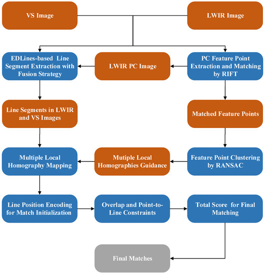 - Li, Y.; Wang, F.; Stevenson, R.; Fan, R.; Tan, H. Reliable line segment matching for multispectral images guided by intersection matches. IEEE Trans. Circuits Syst. Video Technol. 2019, 29, 2899–2912. [Google Scholar] [CrossRef]
