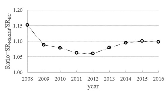 The ratios of SRNSRDB/SRBC from 2008 to 2016.