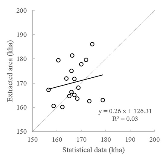 The extracted sugarcane planting area against the 250 m spatial resolution statistical data.