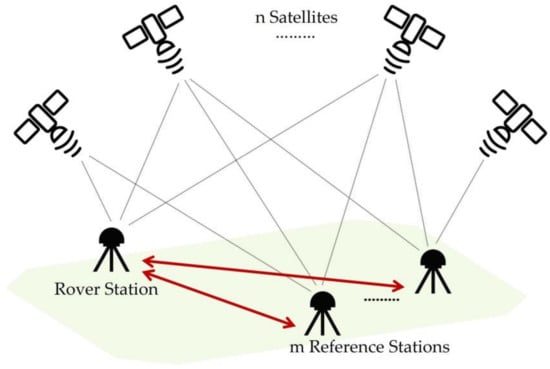 Schematic graph of relative positioning with one rover station and multiple reference stations.