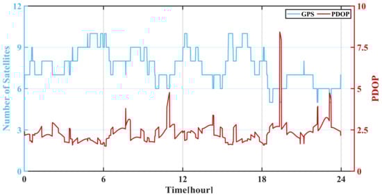 Figure 4 shows the position dilution of precision (PDOP) and the number of GPS satellites tracked by the station XJ06 on 15 February 2020. Station XJ06 tracked 5 to 10 GPS satellites with PDOP values oscillating at about 2.3.
