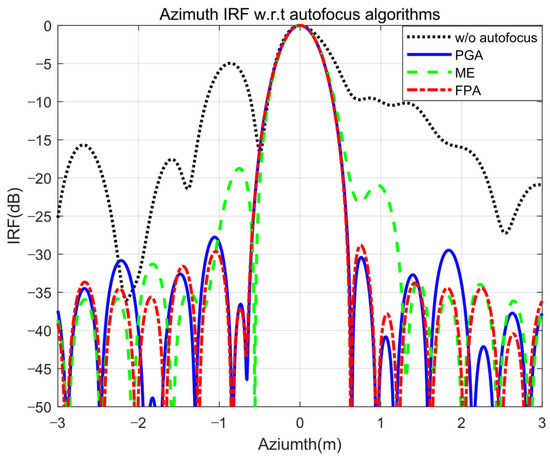 IRF measured from the inserted point target for each of the autofocus algorithms.